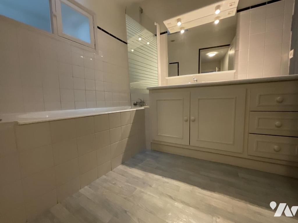 A l'arrivée, pièce de vie, cuisine séparée, salle de bains, dressing, wc, chambre.